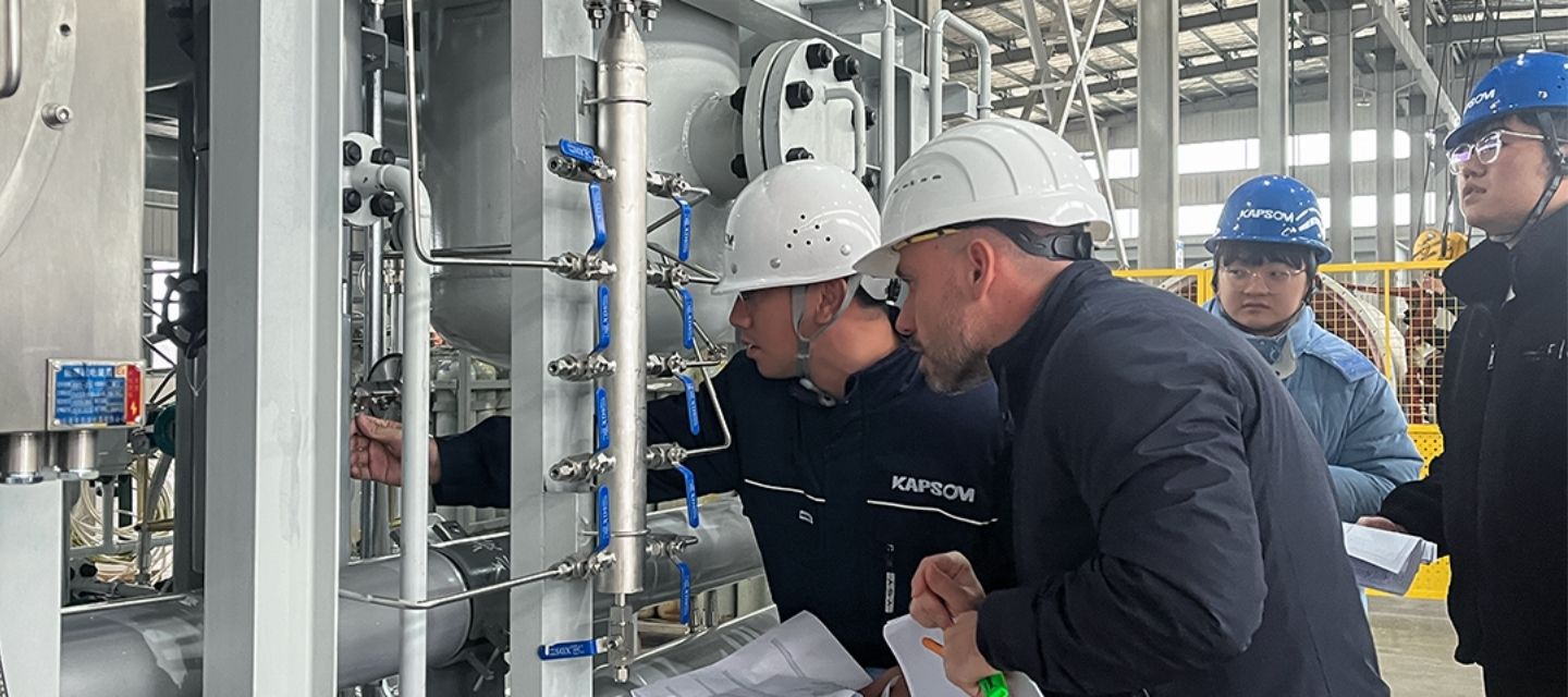 En marzo de 2024, los clientes del Proyecto de Amoníaco Verde de África Occidental visitaron KAPSOM. Acompañados por nuestros ingenieros técnicos, realizaron con éxito las Pruebas de Aceptación en Fábrica (FAT) de unidades clave del proyecto, como la generación de nitrógeno, la producción de hidrógeno y los compresores.